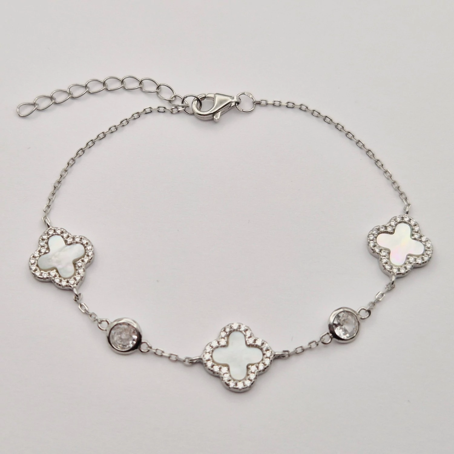Ezüst divatos gyöngyházas karkötő cirkónia kövekkel