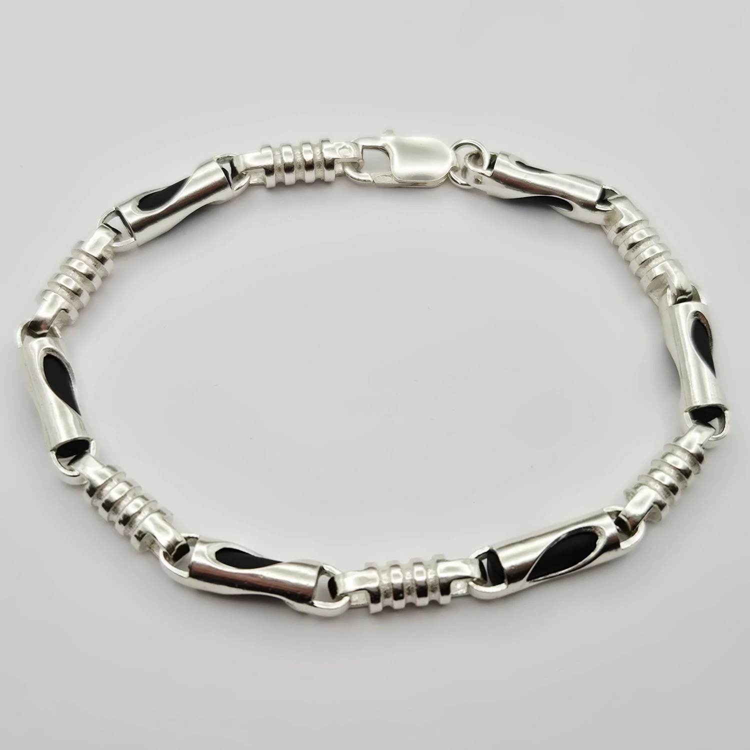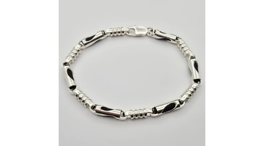 Ezüst férfi karkötő kaucsukkal kombinálva