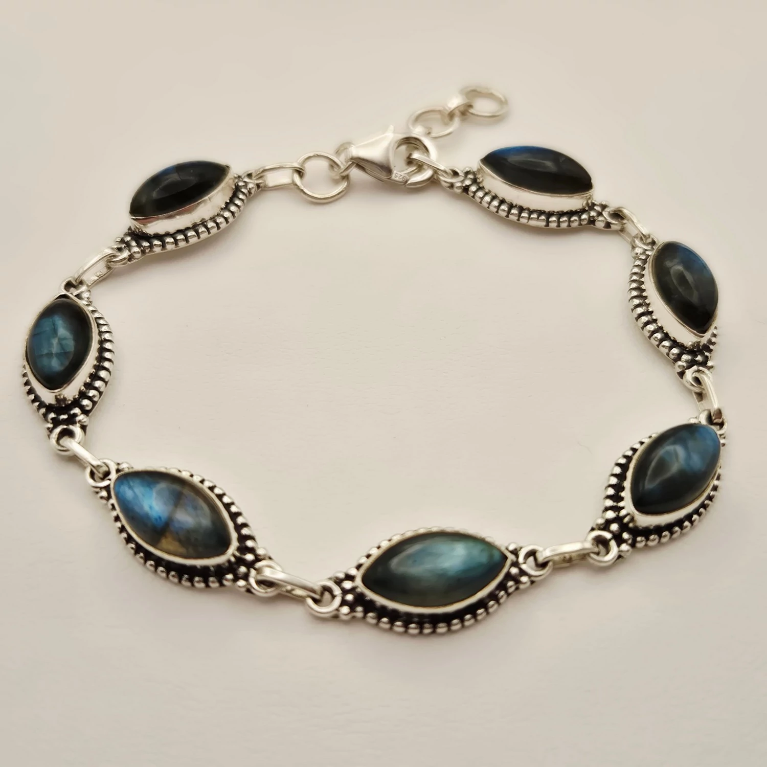 Ezüst labradorit köves karkötő