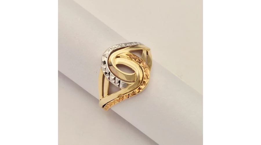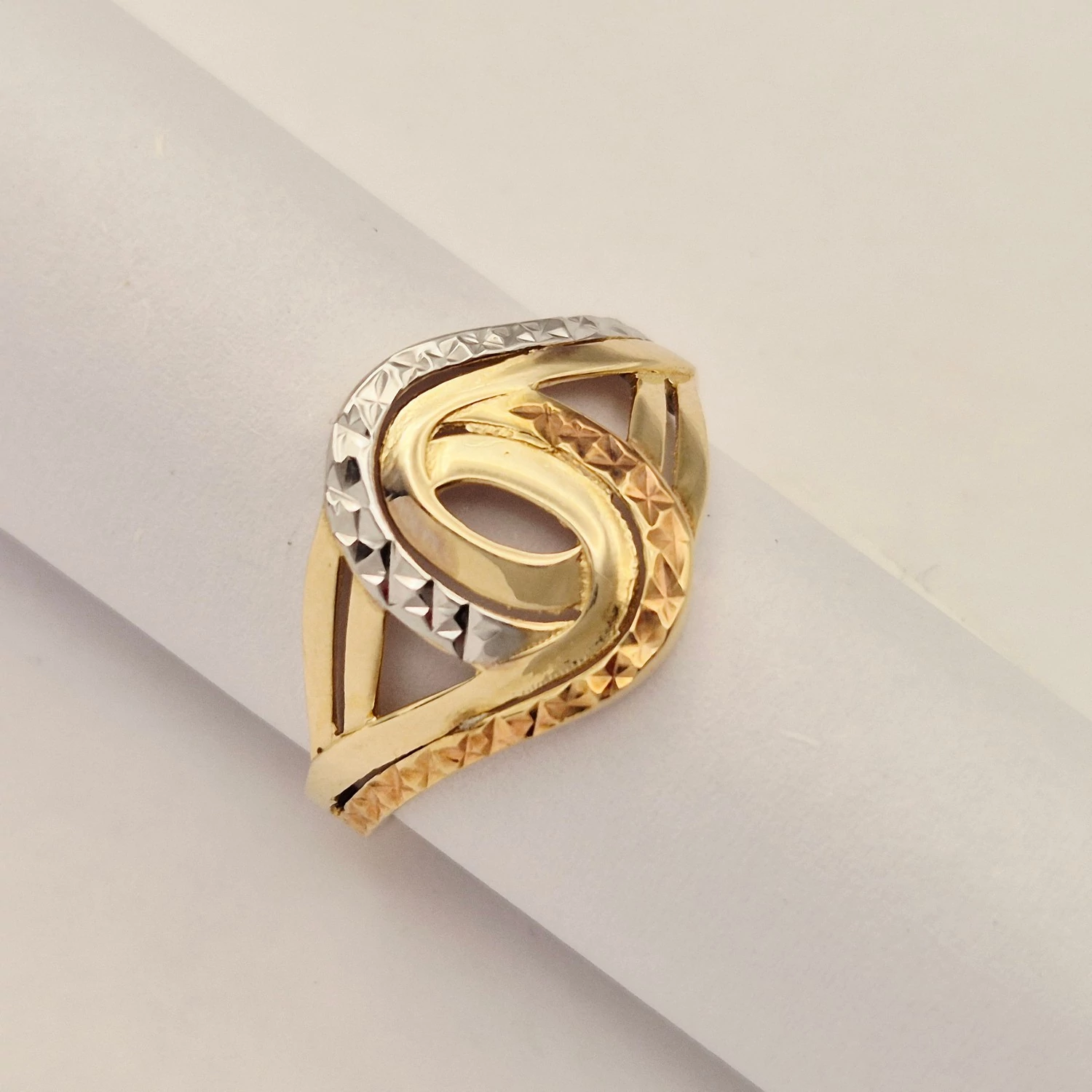 Sárga-fehér-vörös arany vésett gyűrű