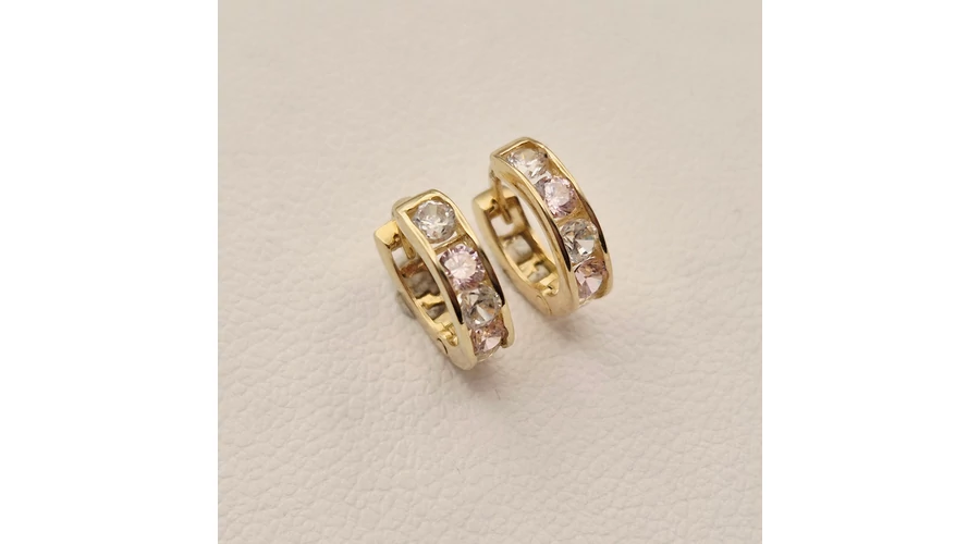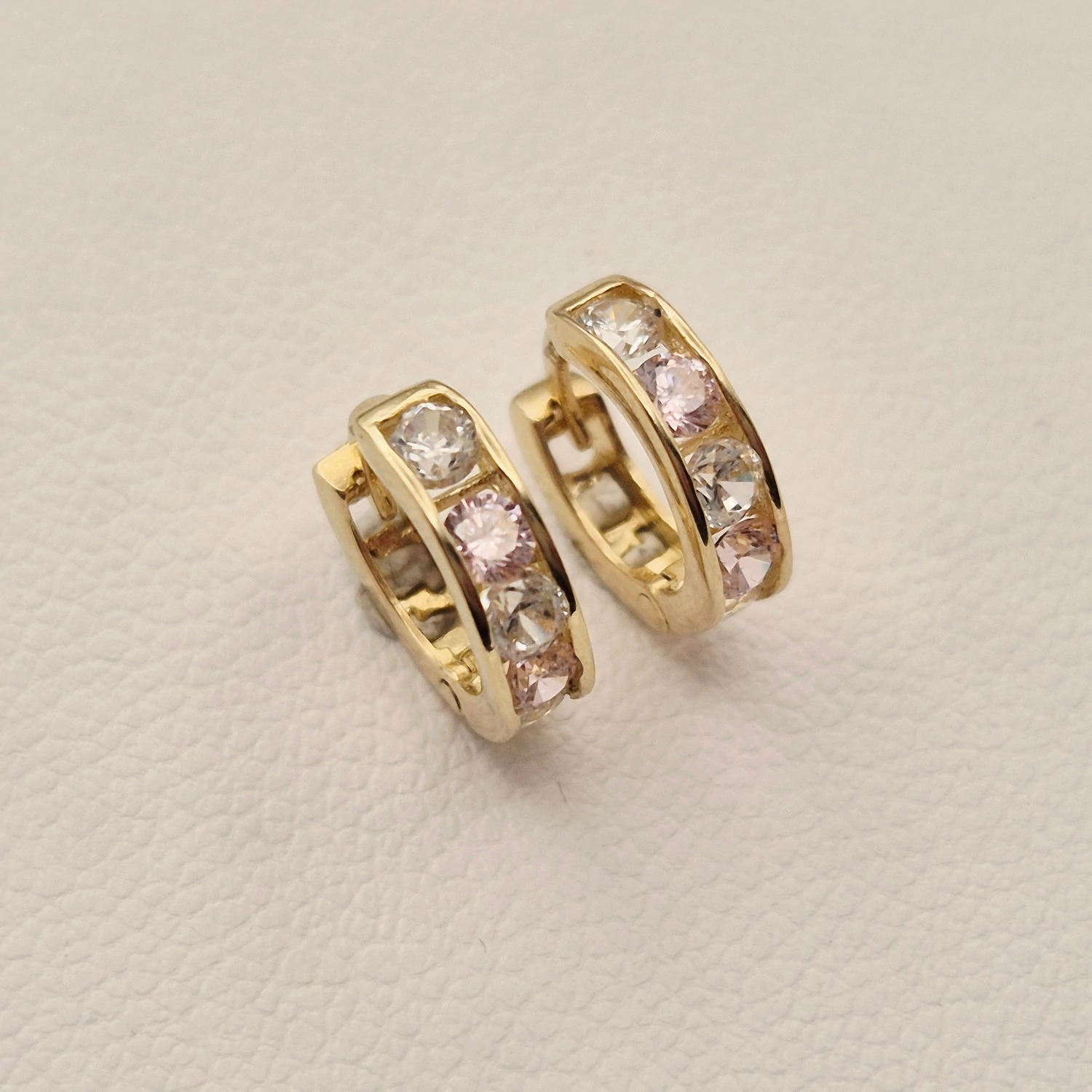Sárga arany, fehér és rózsaszín cirkónia köves karika fülbevaló